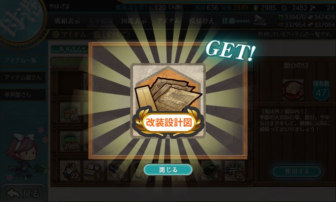 節分の豆は、東海以外は改装設計図と新型航空機設計図に。残りの豆は、デイリーの演習報酬で1個もらったから丁度余った豆と合わせて全部ネジに。