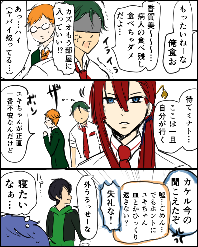 タイガがシンを看病する姿を見守る先輩たちの漫画