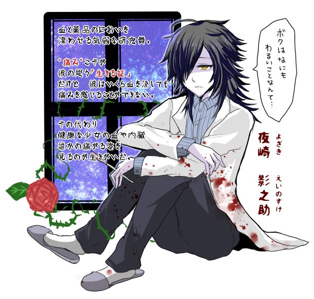 @ciolsn89 corさんは……線の細い、綺麗なお兄さんかな……と思いましたが、そんな自キャラいない気がしたので、見た目だけはそれっぽい影之助ですかね。中身はロリコンマッドサイエンティストっていうやばい人なんですけど。