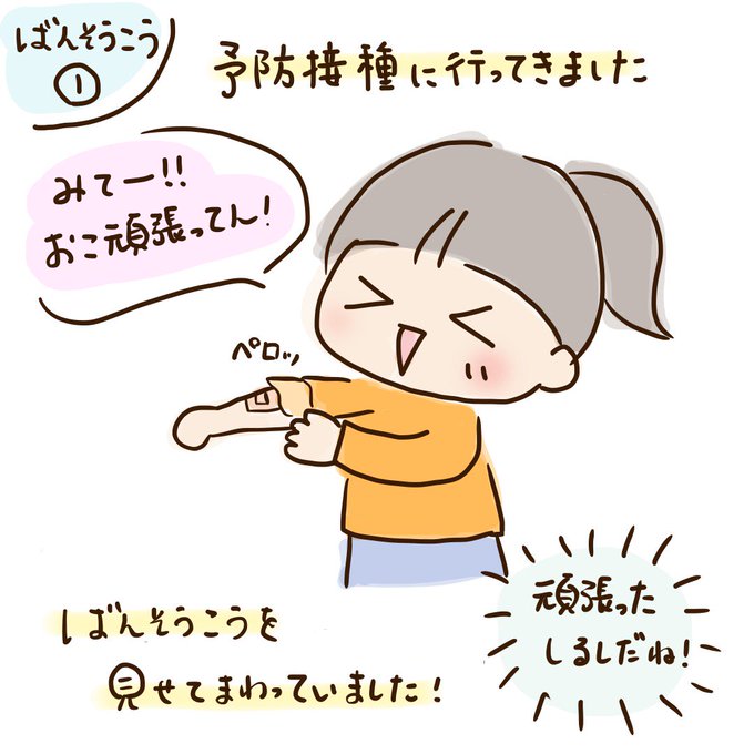 予防接種の後の絆創膏は頑張ったしるし!! #育児絵日記 #うちのおこ