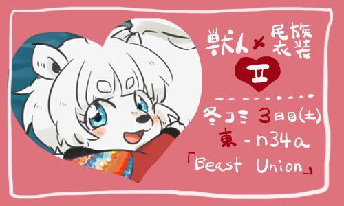 【お知らせ】 この度、12/31(土)のコミックマーケット91 東-n34a■「Beast Unison」様にて委託販売される「獣人×民族衣装本II」に参加させて頂いてます!素敵なイラストが勢揃いの一冊になってると思いますので、よければお手にとってみてください♪