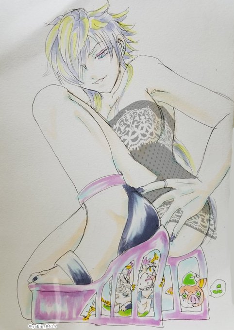 テーマは『モヘア』でした。ロッカーは太ボーダー着るイメージ。他ジャンルから14を愛でる今に至るまで仲良くして貰っている女性ベーシストリスペクトでベースギター持たせてみたけれど慣れなくて弦と手がずれてるのは薄目で見て下さい。V系生物通ったとは思えんな。