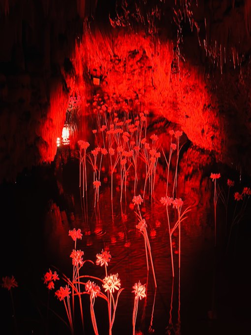 蜷川実花の鍾乳洞アート凄かった 黄泉比良坂ってこんななのかなって感じだった ちっちゃい子が怖がって泣いてたわ