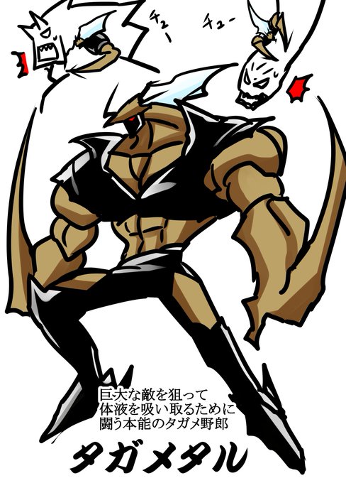 「タガメっておっさんの俺が子供の頃でも超希少種だったよなあ…」と思い出しながら画像検索したら、バカでかい蛇とか体液吸って殺してるタガメの画像がヒットしたんでタガメ人外描きました