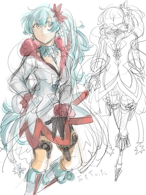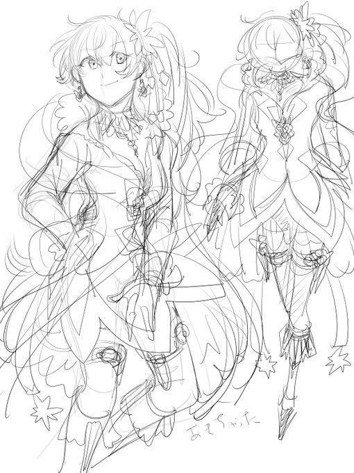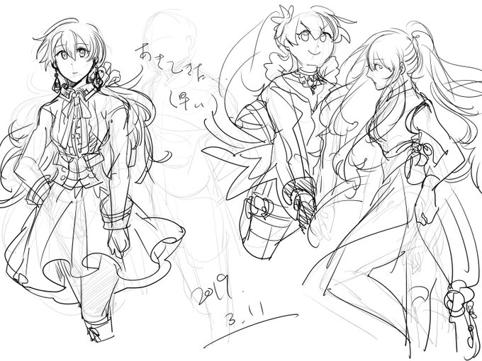 もう一個違う色塗りしてたけどなんかしっくりこなくて没ったやつと線だけのやつとかその他落書き。 ほんとはもうちょい現代っぽい?ようなデザインにしようとしてたけど私には無理でした…