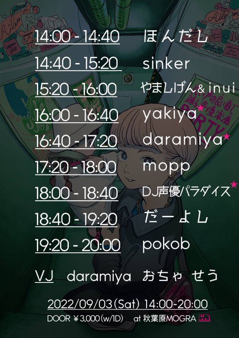 9/3(sat) 14:00-20:00 https://t.co/EgdPyM1U1I