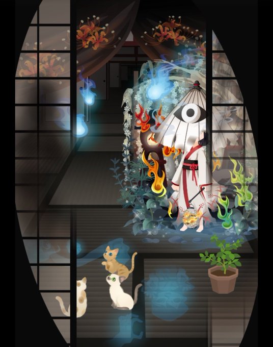 せっかくだから傘お化けコーデ。