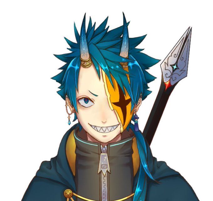 ベースはウルフカットだが上の方は右角の辺りからツンツンしてて襟足部分を結んで前に垂らしているぜ!