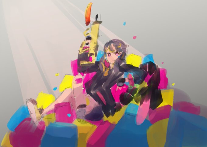 背景が描けないことを認めて、キャラの魅力を引き出すことに全力を注ぎます。今回は明度のコントロールと、色の配置を意識。シンプルにHちゃんのかっこよさを表現したい😃