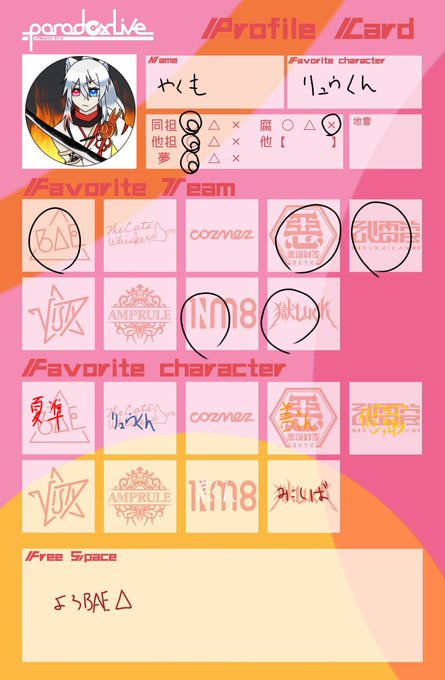 丸が付いてないとこもありますが、全員推してます⸜❤︎⸝ ライブ楽しみ☺️ 気になった方のみです💦 #パラライ自己紹介カード #パラライ好きさんと繋がりたい #パラライ好きな人と繋がりたい