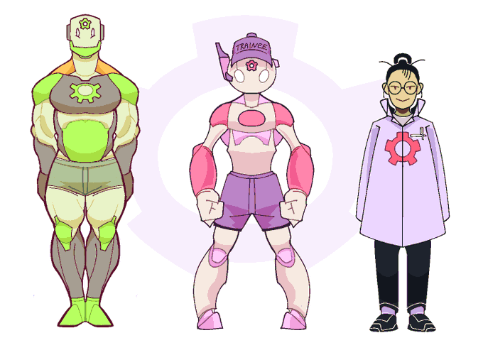 a robot a robot and a girl who made them she's pretty quirky #characterdesign