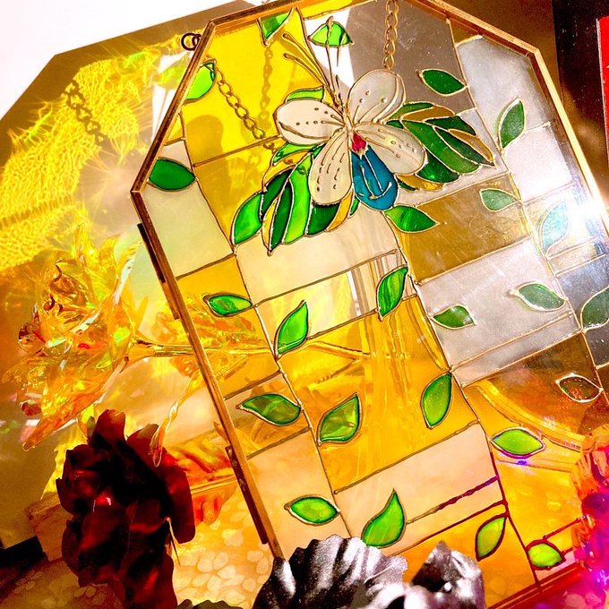#8月の終わりにあなたの作品見せてください 紙の上だけじゃ満足出来なくてガラスにまで装飾し始めて、新しい絵描き枠に住んでます✌(’ω’) ステンドグラス×イラスト=ゃま芽