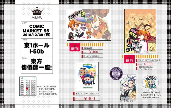 画像は当日の新刊(2種)とお品書きです、宜しくお願いします😃
