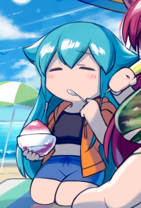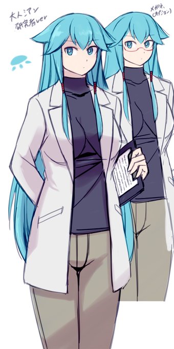 #オリキャラは性癖の見本市 中性的水色謎髪サイバーパンク娘
