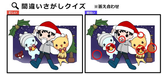 右の絵と左の絵で間違いが9つあるよ!