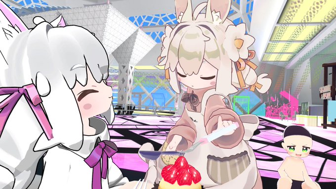 一昨日の写真そのに! ①にゃんこにのるコックさん ②…にのる警察官しごとしなさい ③モフられるライオンさん ④お盆前に休む精霊馬さん、精霊牛さん #VRC環境撮影班 #VRChat