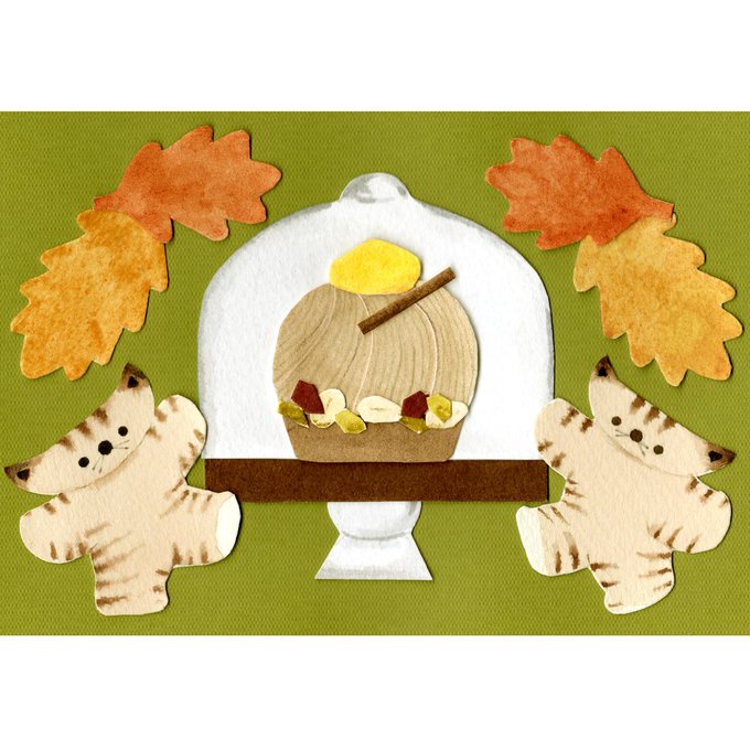 秋の新作ケーキが完成したよ! #切り絵 #猫 #モンブラン