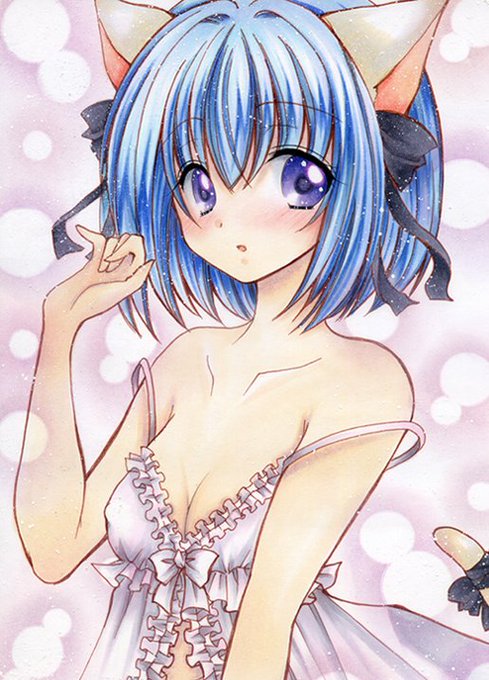 できましたー。にゃんこちゃん( ´ ▽ ` )ノ 結局色濃いですけども( ;∀;) #コピック #オリジナルイラスト #ねこみみ
