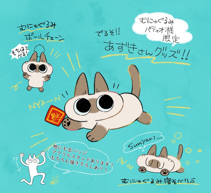 あずきさんがむにゅぐるみになりましたわーい!寝そべってるやつとかボールチェーンでカバンに付けれるやつとか盛りだくさんです!もちろんアクキーと缶バッジもあります! https://t.co/GLzSZKFVHZ