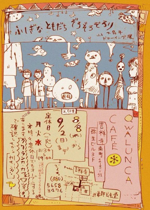 そんなこんなで凱風館はイナンナの冥界下り公演終わりましたけども、東京は吉祥寺、クワランカ・カフェ のドローイング展はまだやっとります。 よろしくお願いします。