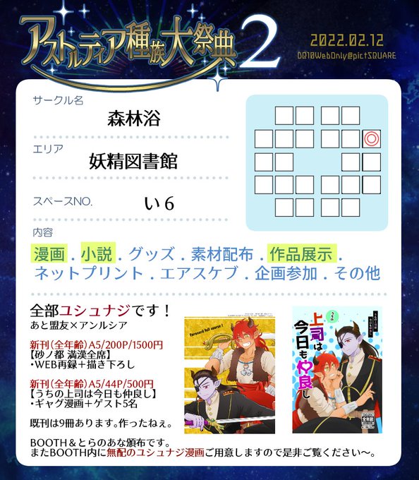 2/12(土) アストルティア種族大祭典2のサクカとおしながきです~全部ユシュナジ本です!!