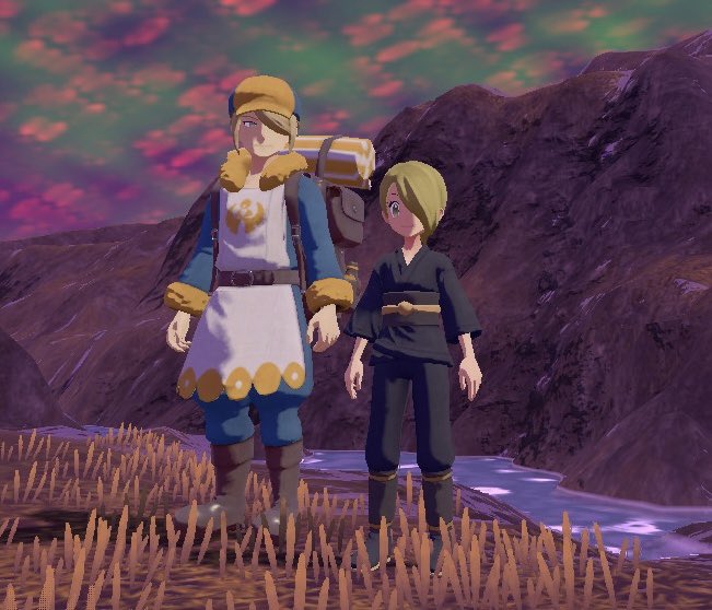 髪型は長髪→ツインテと変遷して、最終的には大好きなシロナ様の先祖であろうウォロとお揃いにした。笑