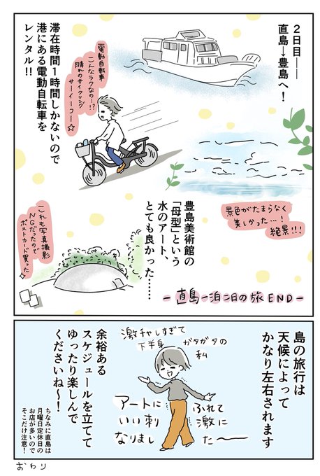 3/21.22の1泊2日で直島・豊島に行ってきました! 直島女一人旅 #漫画レポ #旅レポ #直島 #豊島 #マイロッジ直島