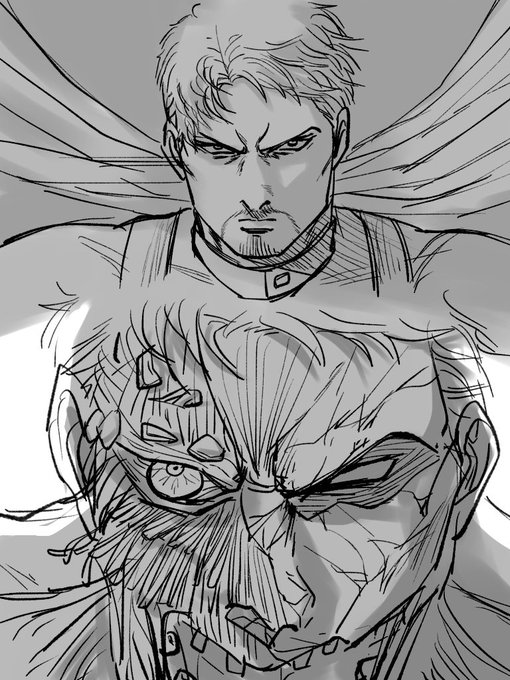 わーもわーもと半顔描いたらケチャップVSマスタードみたいになりました