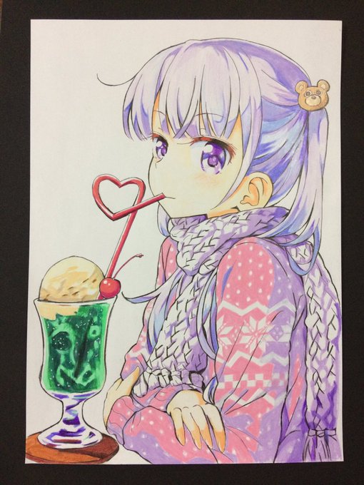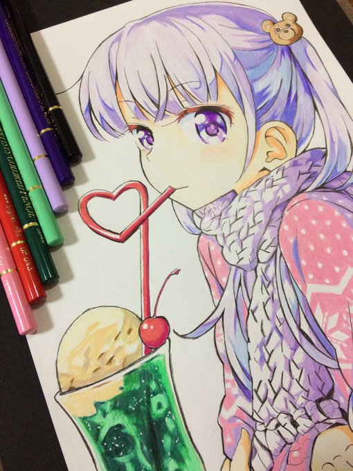 青葉完成!! 色鉛筆模写です╰(*´︶`*)╯ クリームソーダ好き… #ニューゲーム #紅組イラスト #紅白お絵かき合戦2017