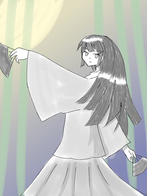 ワンドロ輝夜様 背景は描くこと出来たけど肝心の輝夜には色を塗る時間がなかったから白黒にしたらなんか違和感を感じる… #深夜の真剣お絵描き60分一本勝負