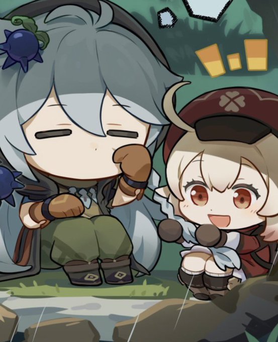 Já que a Klee canonicamente faz trancinhas no cabelo do Razor, é muito provável que ela que faça as do Albedo também.
