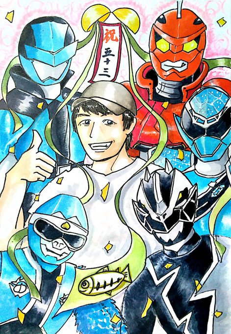 「食べてみろ!これが100点のおにぎりだ!」 ルパンブルーを描きたかっただけなんです。 #ドンブラザーズ #ドンモモタロウ #ルパンブルー #アバターチェンジ