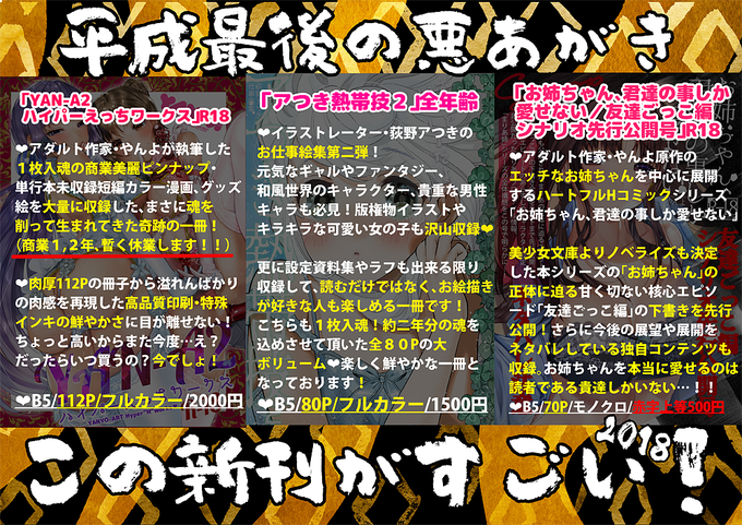 【C95/三日目東5シ40a/アつき熱帯夜】冬コミのお品書きです!2000円以上お買い上げの方には先着で便利なショルダーバッグをお付けいたします。新刊3冊ともド分厚いので是非楽しみにいらして下さい🌺🌴スペースでまってまーす✨👨🌾