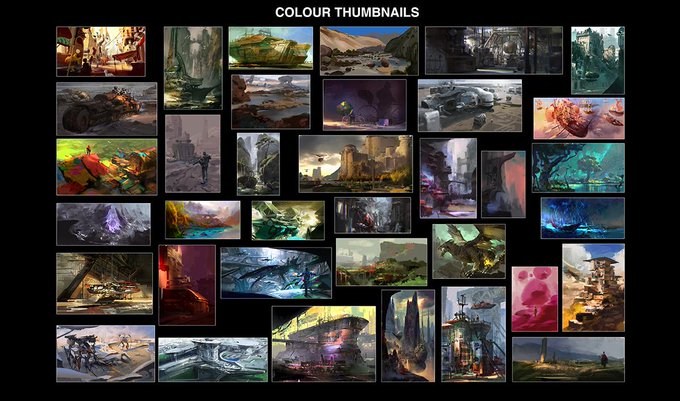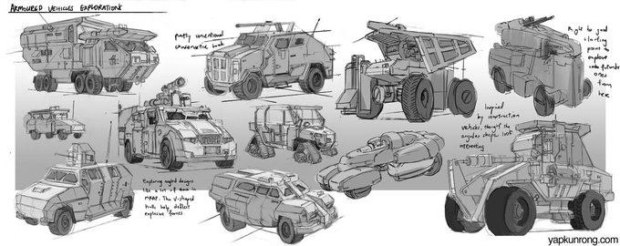 コンセプトの仕事している間、こういうスケッチは割と大事だと感じました。がっつり描く前にアイデアがあれば早く紙に書いたり、シルエットや造形を遊んでみて、頭の中の整理って感じです。ここから引っ張ることがおおいです。とくにオリジナルの場合!