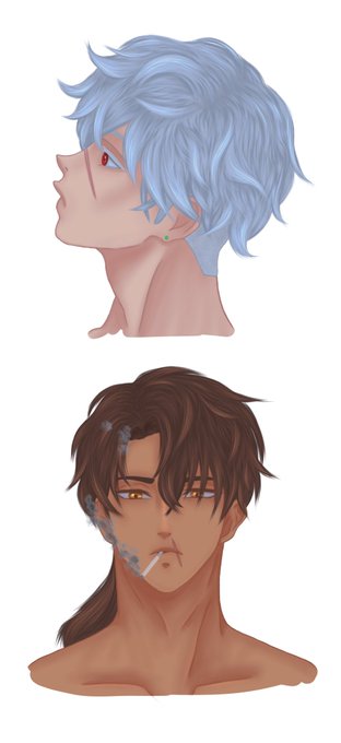 @artistsbase @Redcube69 @Nachan__240 This are two of my ocs, Aeron (up) and Ezra (down) 🫣