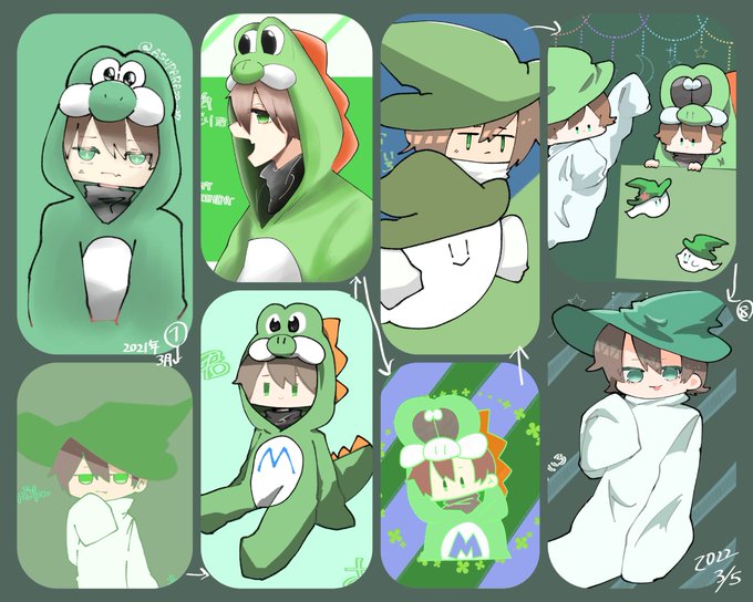 ちょっとまとめた🟩くん 思ったより描いてた(アナログ除き) 一年間だった…( ˘ω˘)描いてきた順番は→描いてるよん