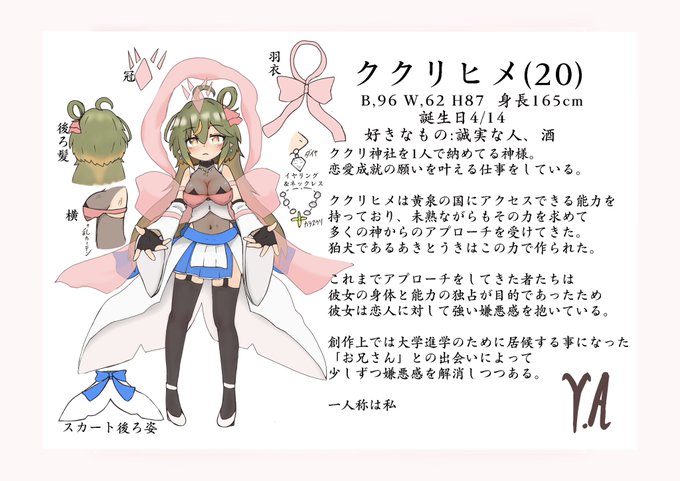 [うちの子]~ククリヒメキャラ紙~ AAA GALLERYのうちの子展に向けてククリを描き直しました。 今回はえち度高めでデザインしましたよ。 #絵描きさんと繋がりたい