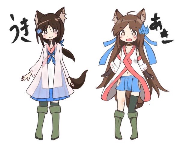 #自創作女子イラストフェス01 双子のあきうきと その主人の菊理媛ちゃんと 同期のウズメちゃんです。
