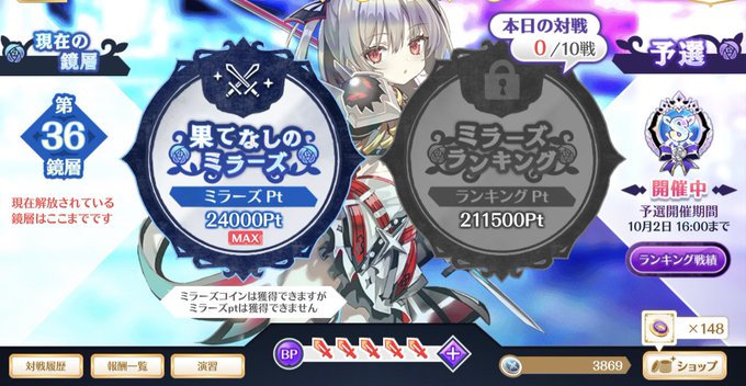 ミラーズ終わりました。 月デリ軸の完凸まどいろ入れてチャージ稼ぎに無凸たなやちと完凸理子ちゃん入れてやってきました🍋✨マッ