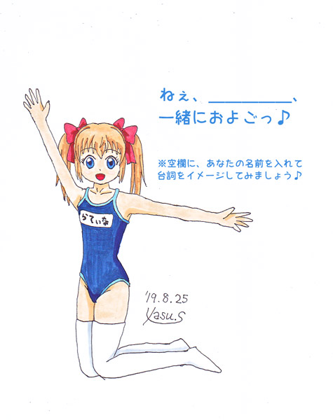 3年前の絵でもおかまいなしだ!当時描いた、スク水姿のラティナたむUPしたる~!(いま描いたら、だいぶ色相やら色感やらが違った絵になりそうw) #イラスト #スク水 #うちの娘 #ラティナ