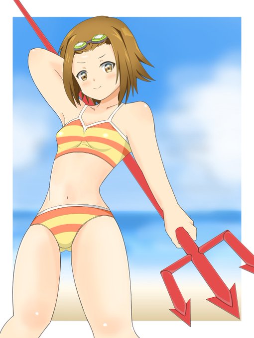 今日は海の日らしいので合宿のりっちゃん 前にアナログで描いたのに色を付けてみました #けいおん