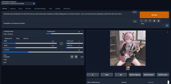 Stable Diffusion web UI 稼働できた。 seed(乱数)の値を1変えるだけで、レイアウトもポーズも服装も変わる。