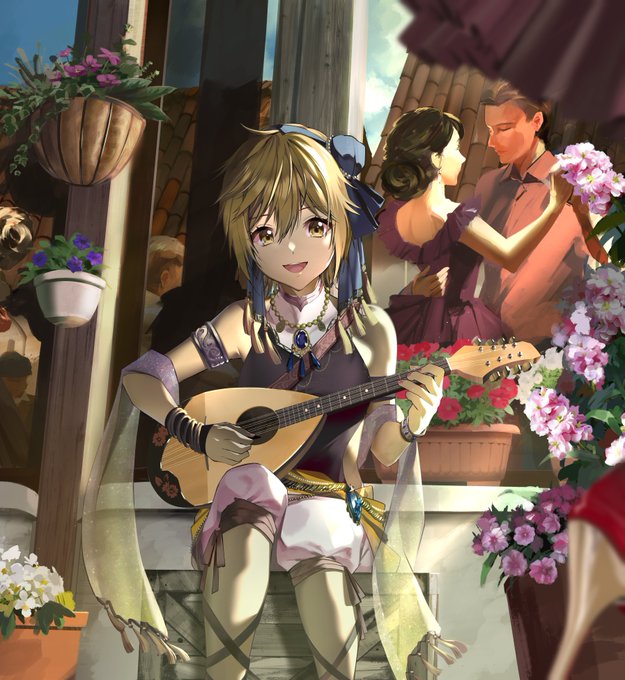 ◆傷だらけになった椿を葵衣は城で休ませました。次の日椿は傷が治っていましたが元気がなさそうです。そこで椿を外に連れて行きました。音楽とダンスで満ち溢れている賑やかな街。 吟遊詩人の渚は 葵衣と椿の姿を見て何かを察し曲を変えます。その優しくも心躍る曲を聴いて椿の心は癒されていきます。