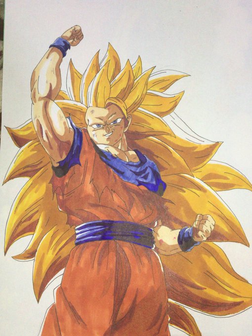 完成した!足りない色は色鉛筆で補充したけどやっぱ変だな。 #バーダック #スーパーサイヤ人3