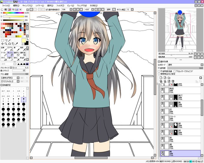 五十鈴描きました! 多色を混ぜると鮮やかに見えるって言われたので髪の毛で試しました。髪の毛に赤黄肌色混ざってます。いいかも^-^ #艦これ版深夜の真剣お絵描き60分一本勝負 #艦これ版真剣お絵描き60分一本勝負_20160221