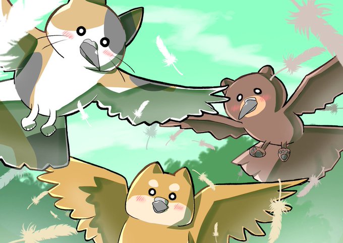 猫・クマ・犬×鳥 #絵描きさんと繫がりたい #イラスト好きな人と繋がりたい #イラスト #オリジナルイラスト