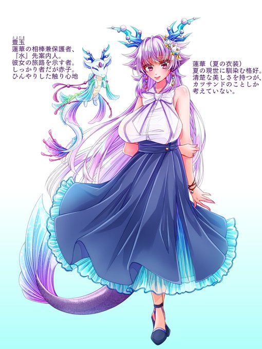 蓮華の夏服と相棒のちっちゃくて可愛い龍を描きました。 めちゃくちゃに可愛い……!! #うちの子