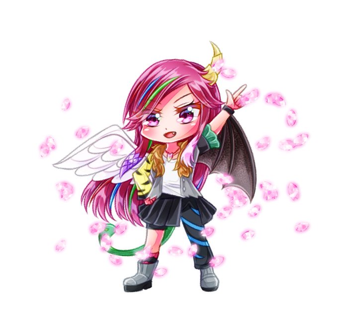 幻季組がそろったぞ!桜吹雪はステージ感強めにホログラムっぽく。衣装にいろいろなモチーフがあって、描いていてとても楽しい子でした!しっぽのヘビちゃんも可愛いね