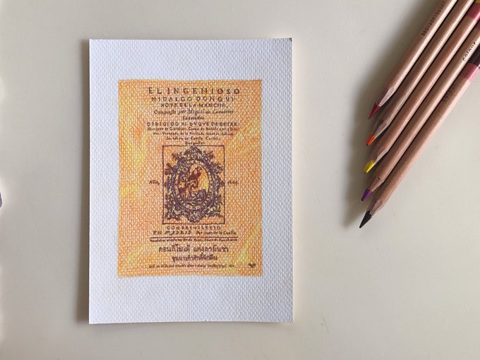 💖 Don quixote วาดตามปกหนังสือของจริงที่เพื่อนอ่าน ตัวเล่มใหญ่และสวยมาก ได้ลองอ่านเองนิดหน่อย จำได้ว่าชอบเลยวาดปกเก็บไว้ https://t.co/fr8OY8mg4t