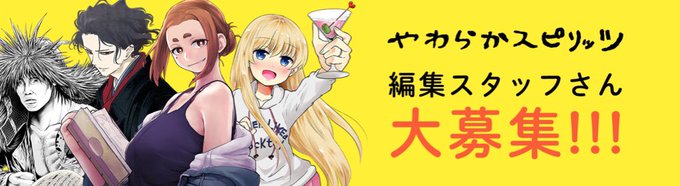 【漫画編集者大募集!】「やわらかスピリッツ」がスピリッツ編集部より分かれて今夏独立新創刊! それに伴い、リニューアルに向け力を貸してくださるフリーランススタッフさんの募集を始めます。詳細はリンク先の募集ページから! ご応募お願いいたします→https://t.co/GQUmEUTHGt